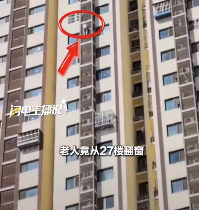 4月1日,北京石景山某社區發生一起驚險事件,一名89歲獨居老婦疑因被反鎖房內,情急之下竟從27樓翻出窗外,沿著外牆冷氣機護欄一路向下攀爬,最終因體力不支,受困於約21樓高空的室外機圍欄上,場面驚心動魄,令人捏一把冷汗。