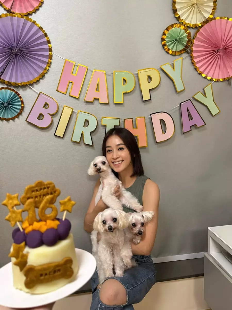 黃心美特別感謝愛犬Bacon多年來的陪伴:「帶畀我好多歡樂,要健康開心,食得瞓得痾得。」字裡行間盡顯對愛犬的疼惜。Bacon作為家中的「老寶貝」,能健康活到16歲,心美顯然非常感恩,即使自己受傷仍不忘為牠慶祝。