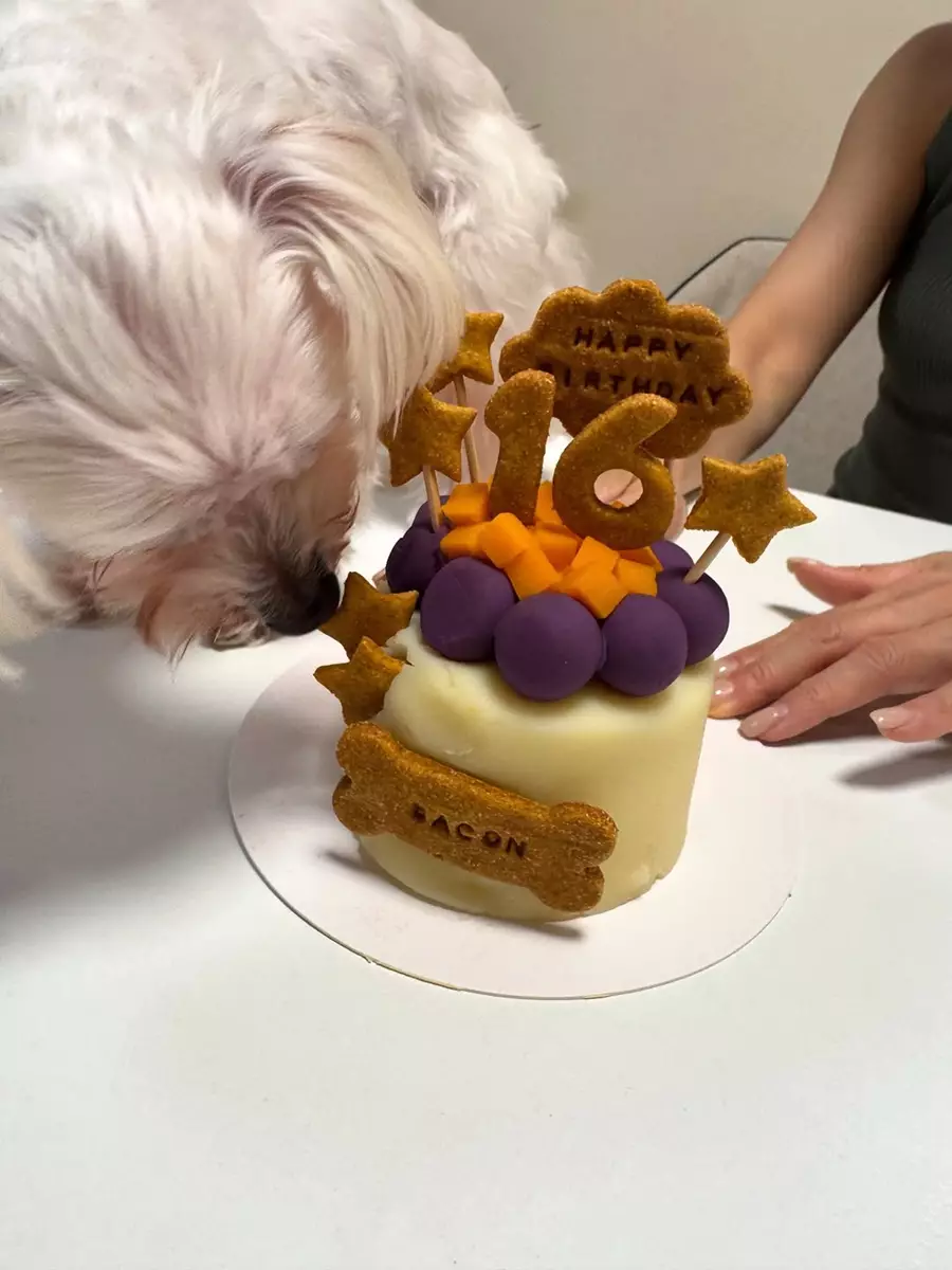 在社交平台分享為愛犬Bacon慶祝16歲生日的溫馨時刻