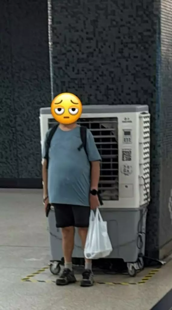 該名女網友在Threads發帖抱怨「啲風吹出嚟都有佢浸汗味」,並附上一張照片。照片中可見一名揹著背囊、大肚腩的大叔站在冷風機前,衣領已被汗水浸濕,正利用冷風機降溫。此舉引發女乘客不滿,認為影響他人。