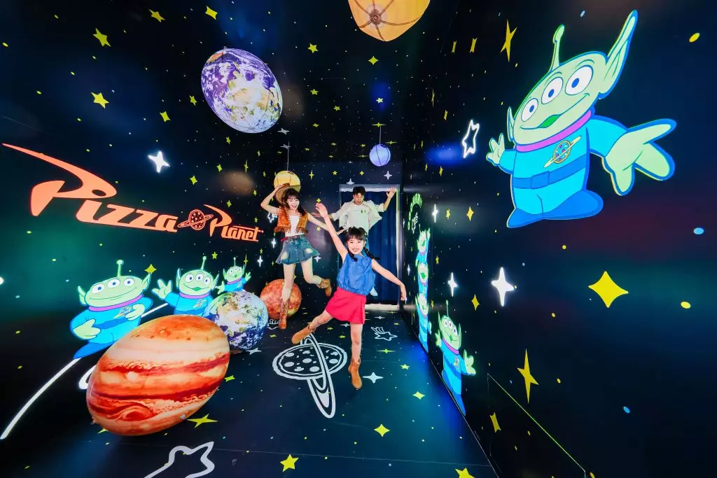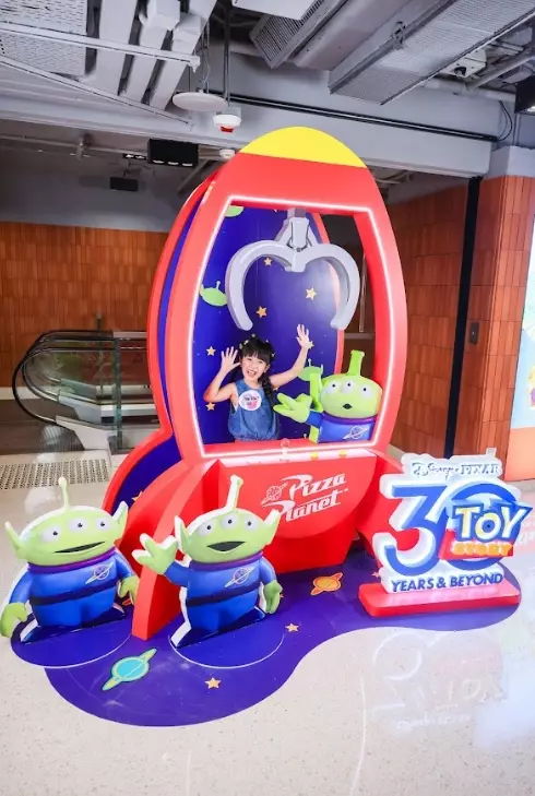 模擬夾娃娃機的火箭印上電影中薄餅店 「Pizza Planet」字樣,還有數隻可愛的三眼仔在等待與各位合照,快來走進火箭與三眼仔和大爪來個 PICK ME合照。