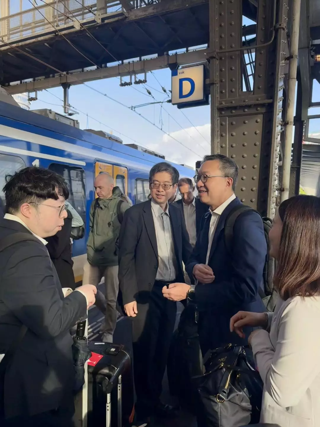 律政司司長林定國完成在荷蘭阿姆斯特丹的行程,乘坐歐洲之星列車,前往巴黎繼續行程。