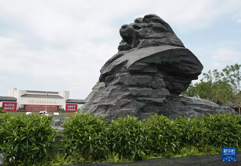 中國人民抗日戰爭紀念館前的醒獅雕塑。新華社圖片