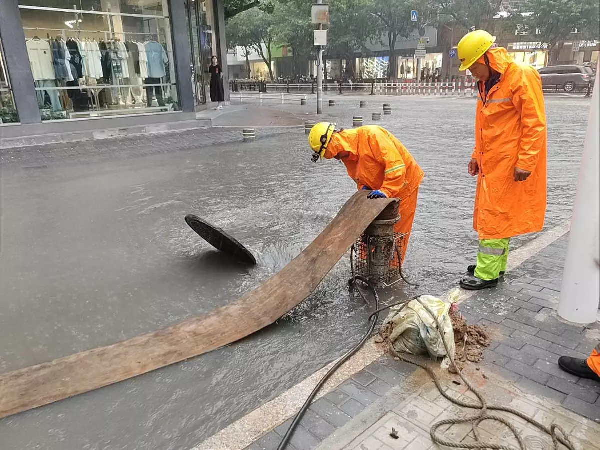 為積極應對此次颱風「丹娜絲」,溫嶺市政人員迅速回應。浙江省氣象局圖片