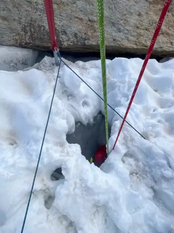 瑞士男冰川健行墮入8米深裂縫 ,「四足英雄」芝娃娃留守原地救他一命。Air Zermatt 網站圖片