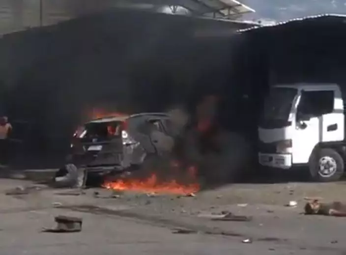 黎巴嫩國家通訊社就報道,一部車被兩枚導彈擊中,現場傳出巨大爆炸聲。X圖片