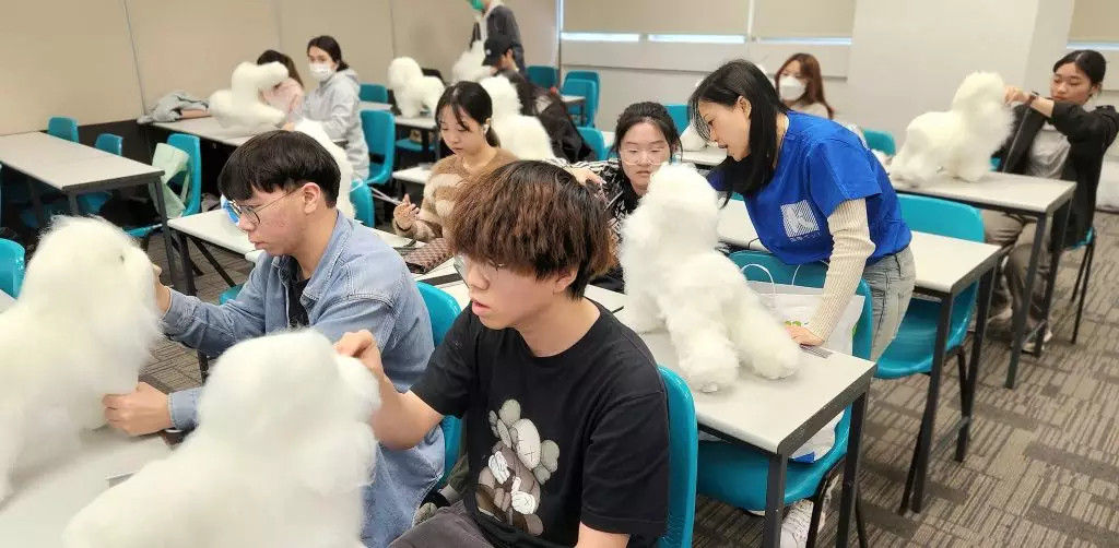 國際專業寵物美容學院(IPGA)導師指導學員相關寵物美容技巧。