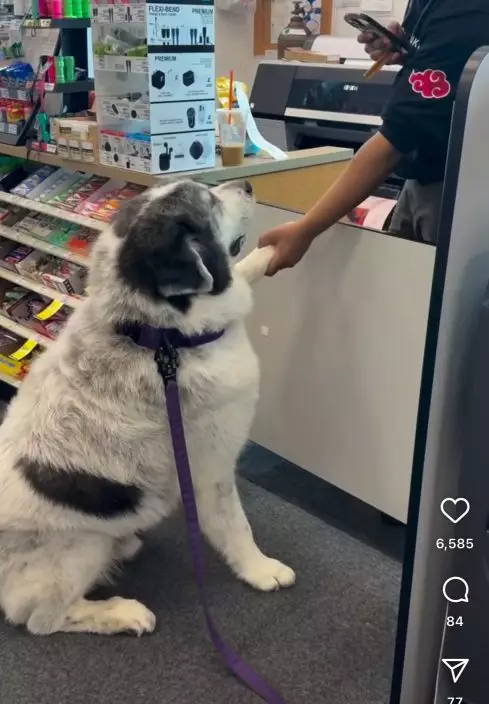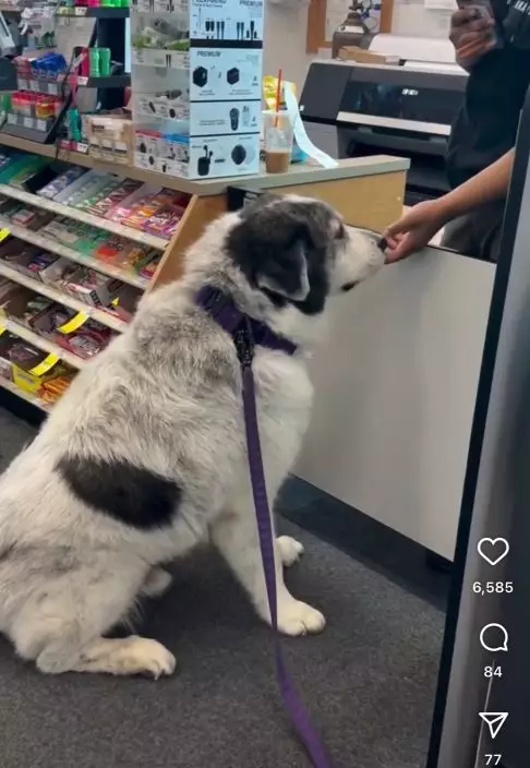乖巧大白熊犬每日準時現身藥舖向員工討零食,遇到顧客結帳則於一旁排隊等候萌翻眾人。