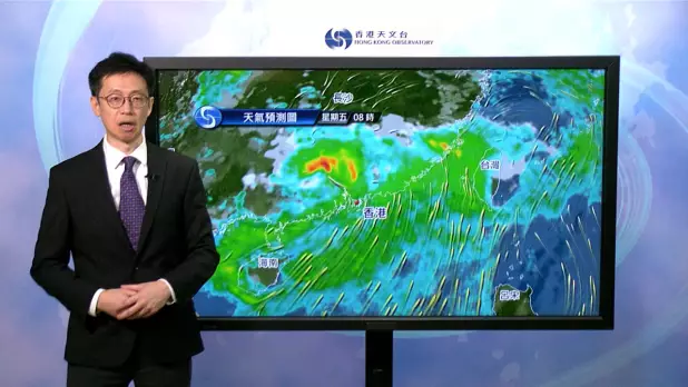 天文台表示,丹娜絲會在今明兩日進入廣東並逐漸減弱,而南側的活躍西南季候風會在明日及星期五影響珠江口一帶,預料本港會有暴雨及狂風雷暴。