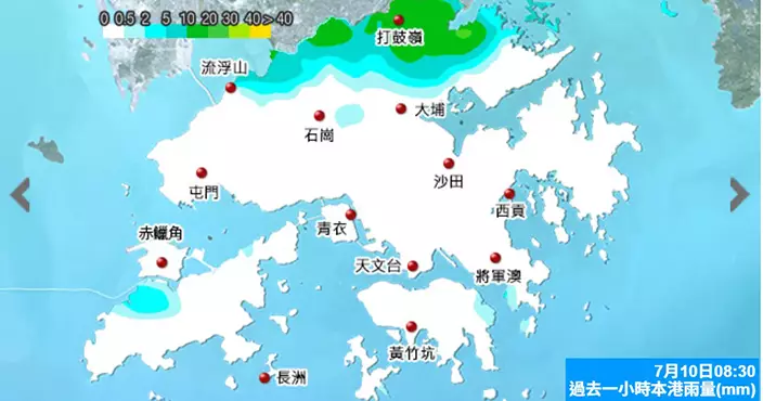 天文台表示香港廣泛地區已錄得或預料會有每小時雨量超過30毫米的大雨。