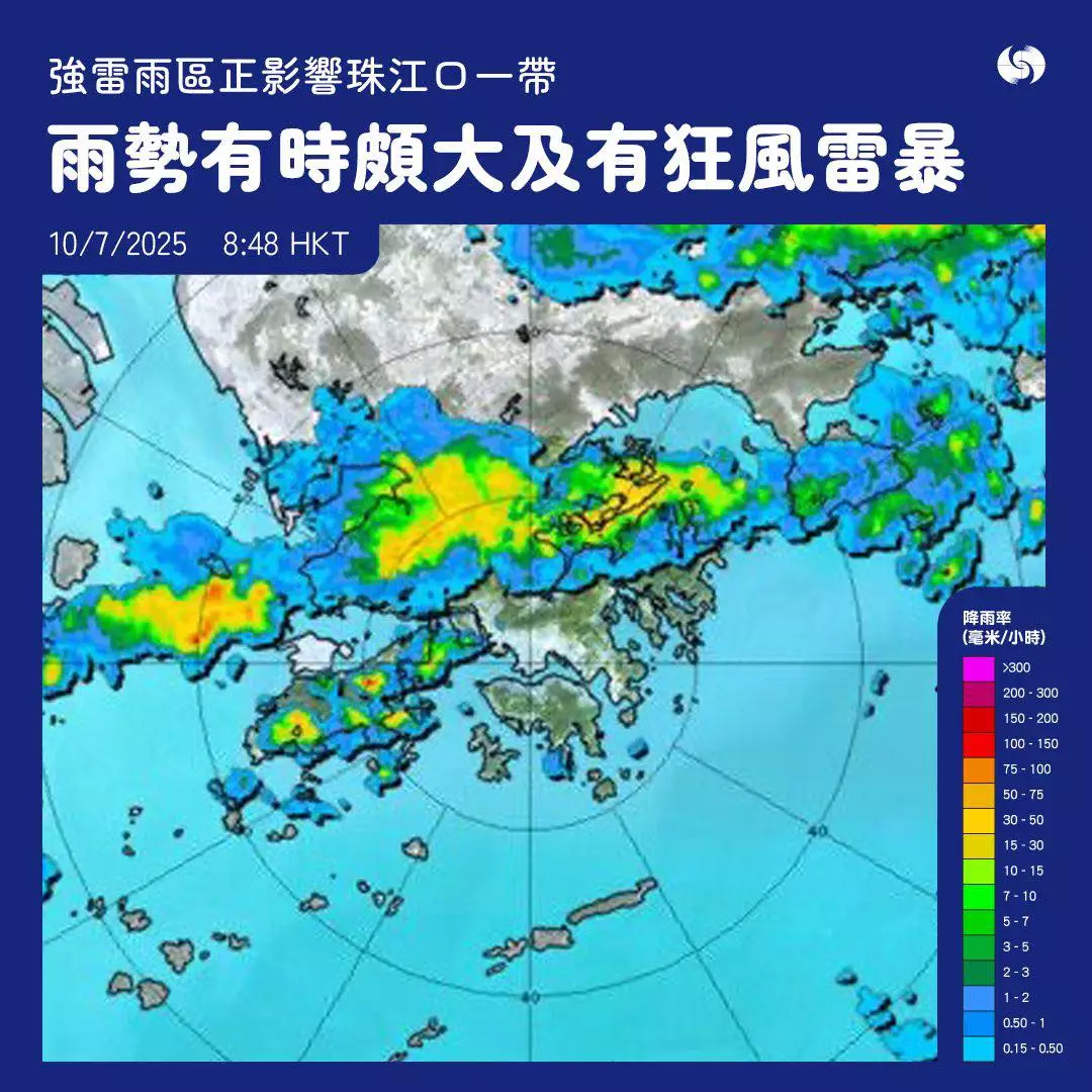 天文台較早前表示,香港廣泛地區已錄得或預料會有每小時雨量超過50毫米的大雨,且雨勢可能持續。暴雨可導致嚴重水浸和交通擠塞,呼籲市民注意安全。