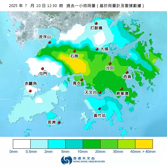 天文台在中午12時40分,改發紅色暴雨警告信號。