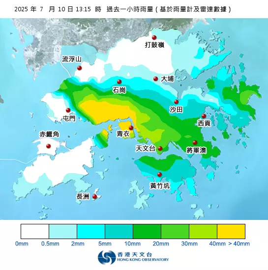 天文台在中午12時40分發出新界北部水浸特別報告。
