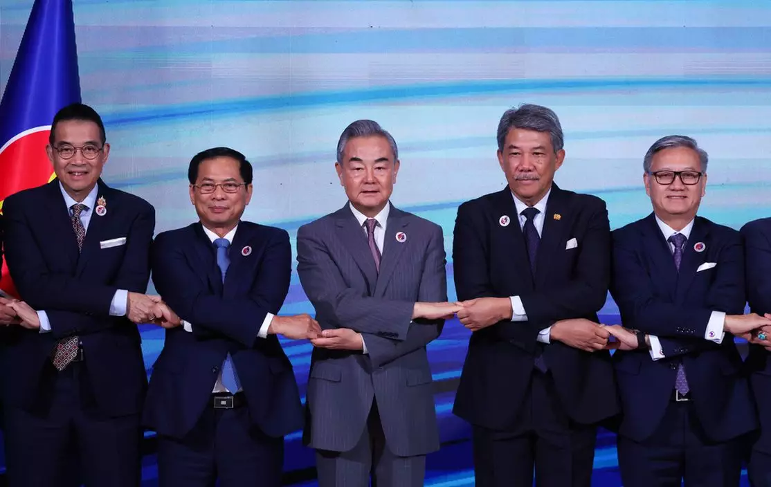 王毅提到,貿易戰推高生產成本,破壞產供鏈穩定暢通,沒有國家能夠獨善其身,要堅決反對築牆設壘,守護好共同發展的生命線。中方願意與各方繼續加強產供鏈互利互惠合作。中國與東盟已全面完成自貿區3.0版談判,期待加快重啟中日韓自貿區談判,高質量實施《區域全面經濟夥伴關係協定》。