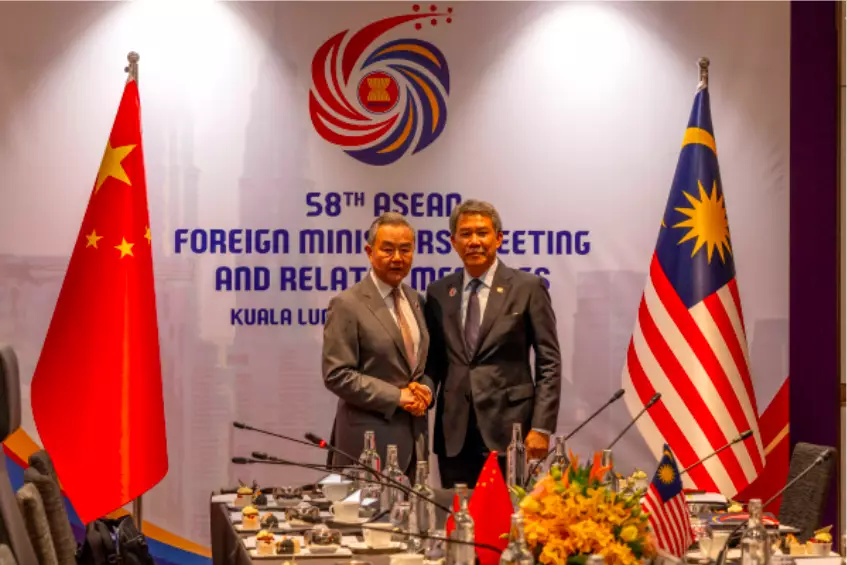 中共中央政治局委員、外交部長王毅表示,中國-東盟已全面完成10+1自貿區3.0版談判,以實際行動擴大共同市場,維護自由貿易。他批評美國卻憑一紙信函向東盟國家徵收高關稅,是典型的單邊霸凌行徑,沒有任何國家會認同支持。中方站出來堅定反制,願同東盟加強合作,共同維護多邊貿易體制,維護全球產供鏈穩定,推動普惠包容的經濟全球化。