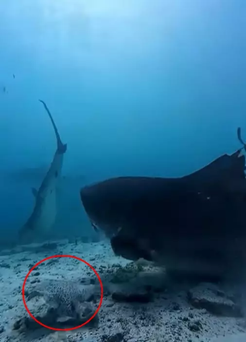 然而,攝影機意外捕捉到鯊魚與電鰩的驚人互動。其中一段影像顯示,一頭大白鯊在水深50米處接近一隻電鰩後,突然迅速竄升至30米處,兩分鐘後才返回原深度,並刻意繞開電鰩。另一段影像則拍到一頭虎鯊在逼近電鰩時,突然閉上用於保護眼睛的瞬膜,這是一種明確的防禦反應。