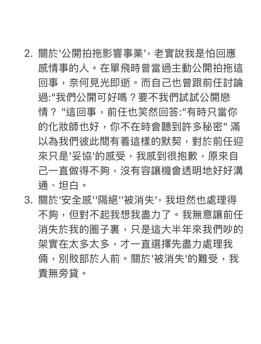 至於女友Po相令關係曝光他有沒有嬲?「我又無!真係無!反而會同佢傾如果呢個階段你想公開,just go ahead。只係後來收到朋友電話話啲相太過親密,先至知咁做或者會影響外間觀感,就同佢講唔好再post啦,反正大家都知道喇。」釗峰除了承認事件沒影響二人關係外,亦直認自己大男人。他一直把關係低調處理,只是想保護這段戀情,「大男人?我算呀!我係大男人,因為我驚無能力照顧我身邊嘅人,所以我要逞強!我唔係要你乜都聽晒我講,但我驚你唔聽我講而出咗事,咁我就保護唔到你,我會仲擔心。因為佢唔係圈內人,扯咗佢入嚟,我會好難保護對方。」快「男人40」的釗峰,亦因大男人主義所以未有結婚計劃,「我成日認為事業要達到一個點先會諗(結婚),因為未能夠畀到一個穩健、舒適嘅空間畀你身邊嘅人,所以就唔會諗住。」現階段,釗峰坦言只想專注勇闖其自資獨立歌手的路。奈何訪問後一周,釗峰女友於網上先稱失望搬走分手,釗峰隨即網上回應證實,更說:「分手,難過事。不要曲解,沒有回應不等於默認這回事。」他亦重申不再回應感情事,希望大家給予空間。