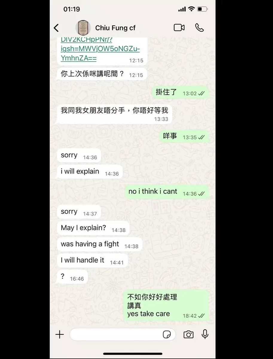 女化妝師Karen月前單方面公開與釗峰的戀情。