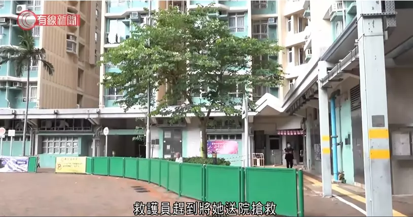 將軍澳一名女子懷疑抹窗期間不慎墮樓昏迷,送往將軍澳醫院搶救不治。有線新聞影片截圖
