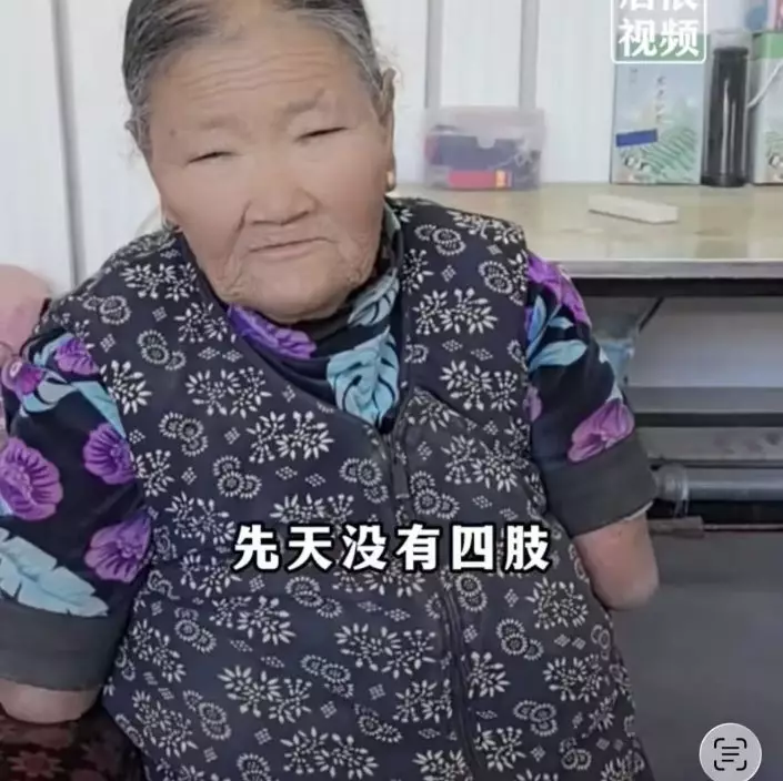 綜合內媒報導,甘肅省白銀市會寧縣回河村一名81歲婦人王玉氏先天四肢不全、無手無腳,卻憑著堅韌的殘缺身軀撐起一個家,用嘴和殘臂撫養3名子女成人,被網民稱為「最堅強的母親」,感人經歷於網上引發廣泛關注。