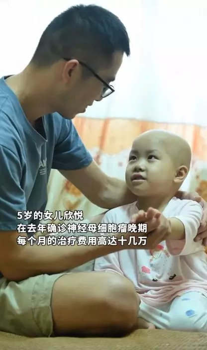 綜合內媒報導,重慶一名39歲男子侯健原本是工廠工人,家中本就不富裕,父親早年因食道癌去世耗盡家產並負債累累。今年7月,侯健唯一的女兒欣悅不幸確診「神經母細胞瘤」晚期,噩耗令原已千瘡百孔的家庭再次跌入深淵。