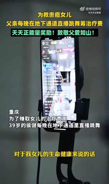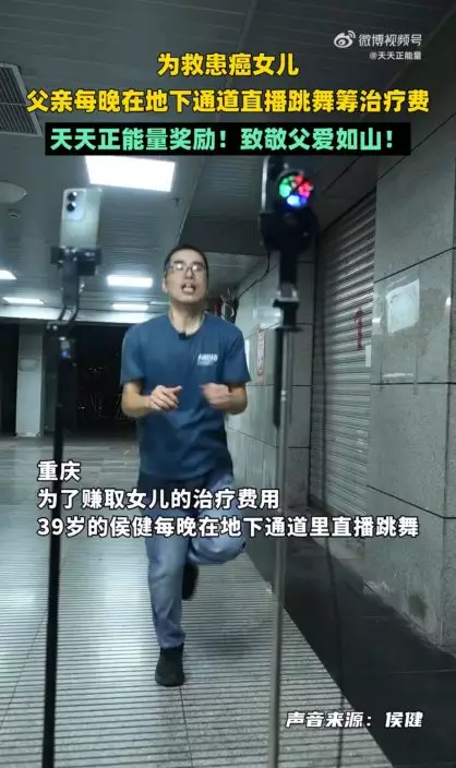 重慶慈父在悶熱地下通道直播跳舞只為籌集醫療費,讓患有神經母細胞瘤晚期的5歲愛女能夠繼續接受治療。