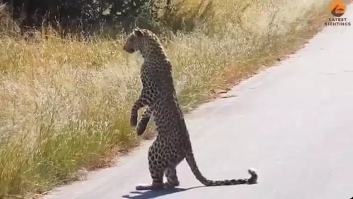《NDTV》報道,印度森林服務局官員卡斯萬 (Parveen Kaswan) 分享了這段長36秒的片段,他在標題寫道:「那隻豹子正用兩條腿站著尋找食物。豹子是地球上最靈活的動物之一。來自克魯格國家公園」。