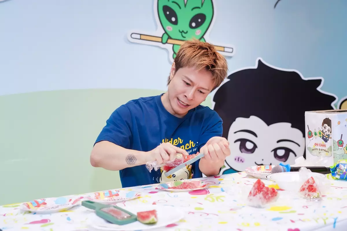 安仔感激族人為他生日花盡心思,「我好開心!一入場見到啲布置好靚,一年靚過一年,佢哋知我喜歡嘅嘢都整晒出嚟。睇吓個生日蛋糕,有我鍾意Chiikawa嘅兔兔、外星人,超靚!佢哋整咗啲盲盒,內有不同款嘅手機磁吸,仲有隱藏版,識玩!另有三款小卡隨機送,有令我沉迷嘅光柵卡、熨金簽名卡和閃卡。佢哋知我鍾意日本嘢,印咗啲昭和風格小海報。」他當然有回禮:「我精挑咗好多夾嘅公仔送畀大家,以sweet為主題,例如一對對嘅公仔或者甜品系列,亦有我割愛嘅Chiikawa特別版和神秘禮物 ,希望大家鍾意。」期間安仔誤認小新妹妹是小新女友,全場爆笑。
