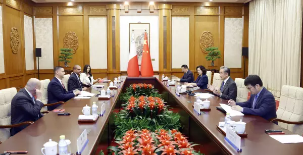 中共中央政治局委員、外長王毅在北京與馬耳他副總理兼外交旅遊部長博奇舉行會談。
