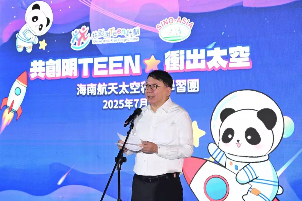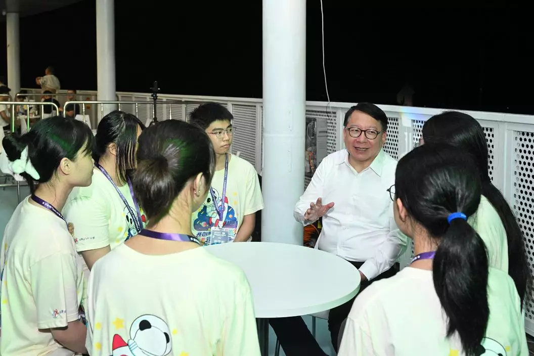 政務司司長陳國基致辭時表示,火箭升空給年輕人兩個重要啟示,包括專注目標,以及堅持信念、克服困難。他說,火箭成功升空是無數科學家和工程師專注努力研究的成果,讀書和做事亦一樣,要做好一件事,一定要定下目標,專心鑽研。火箭有清晰方向,才能夠準確抵達目的地,人生有目標,才可以走得更高更遠。