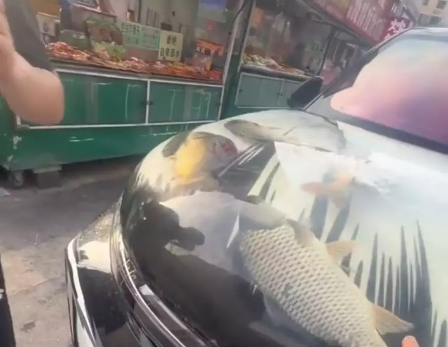 綜合內媒報導,遼寧瀋陽一名劉姓男子自稱近日外出釣魚時忘記攜帶儲魚水桶,於是靈機一動將捕獲的魚暫時放入新能源汽車的引擎蓋的車衣中。影片可見,劉男於車輛引擎蓋上鋪設透明車衣並注滿清水,然後放入活魚將之變成「臨時魚缸」,用手按壓引擎還會微微起伏。