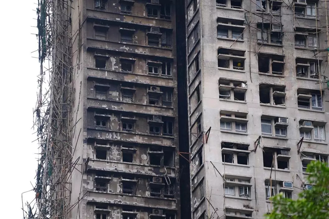 大埔宏福苑經歷了五級大火之後,一片熏黑破敗。巴士的報記者攝