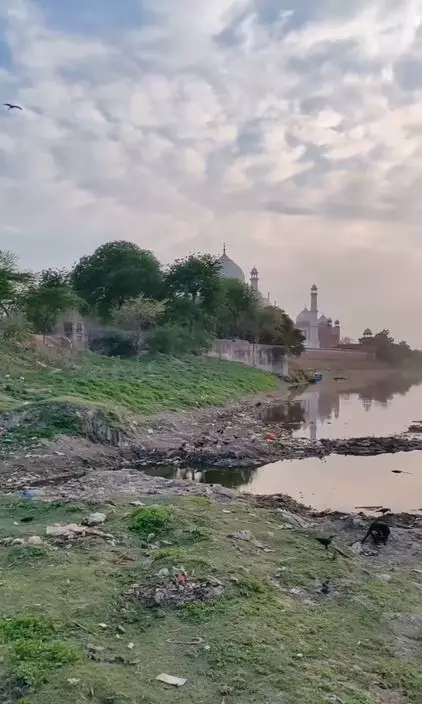Instagram 用戶 @podroznikdowynajecia 分享片段,顯示一批遊客站在這座標誌性紀念碑後面,拍到河流佈滿垃圾,其中一名女子用圍巾摀住鼻子,攝影機進一步捕捉了垃圾的蹤影。片中的遊客說:「泰姬陵在哪裡?太臭了,比清奈 (Chennai) 還臭」。
