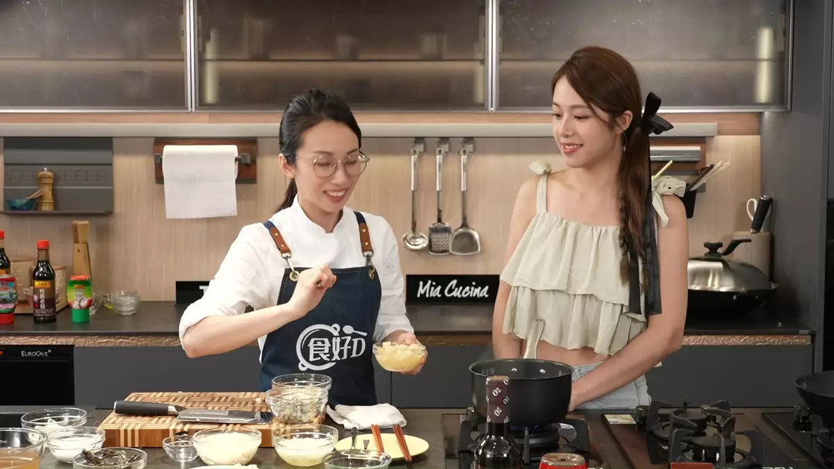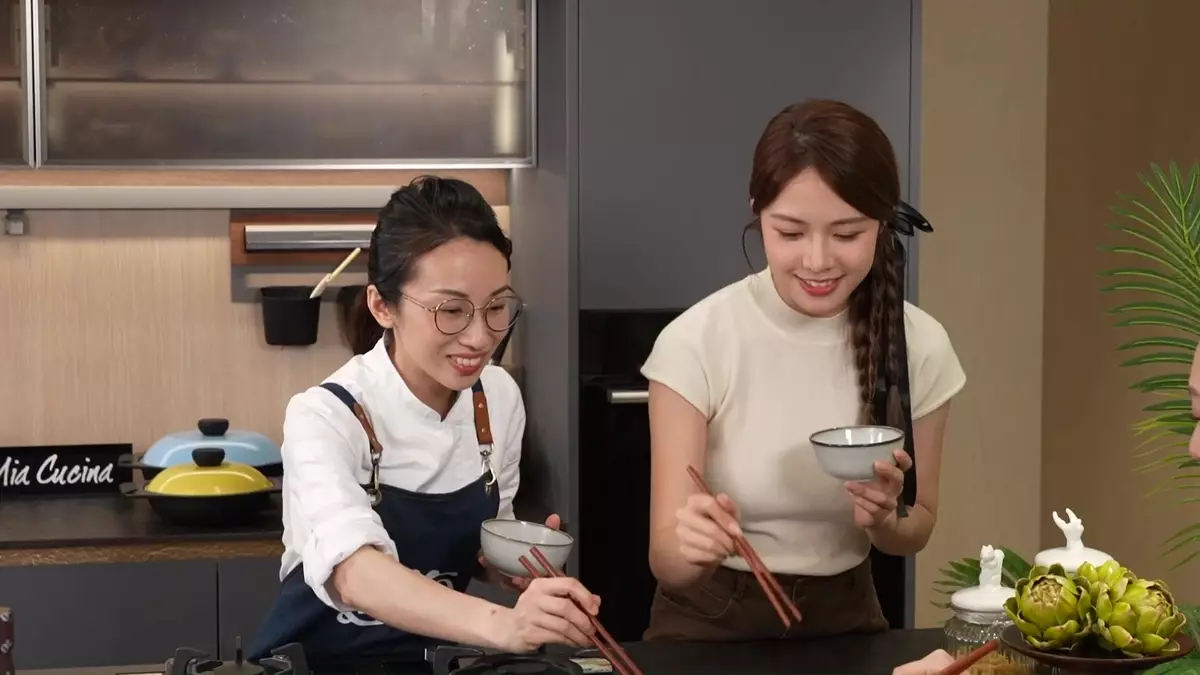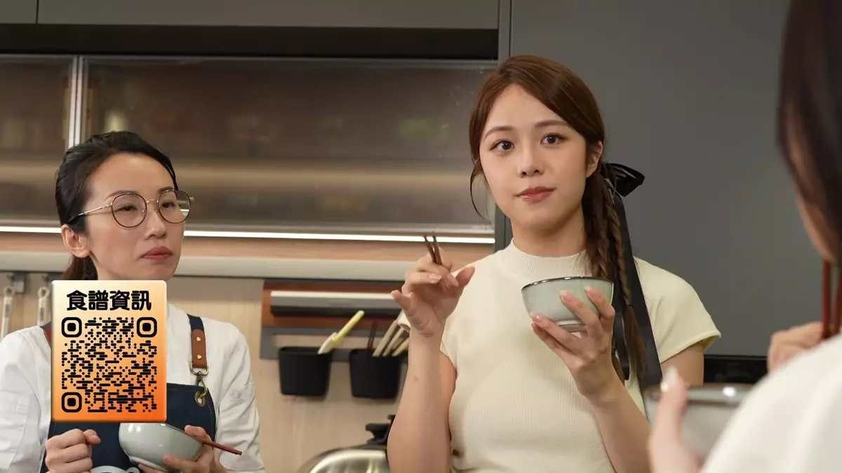 馮盈盈、莊子璇靚住咁試食西芹百合炒豬肚。