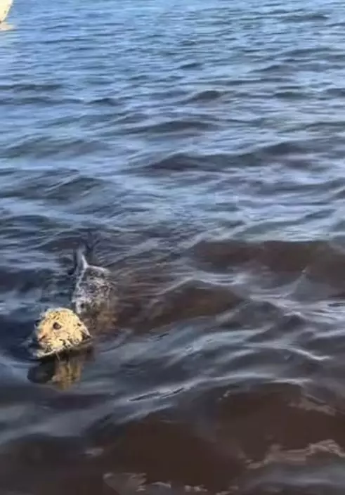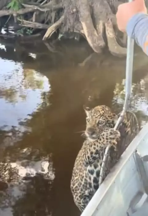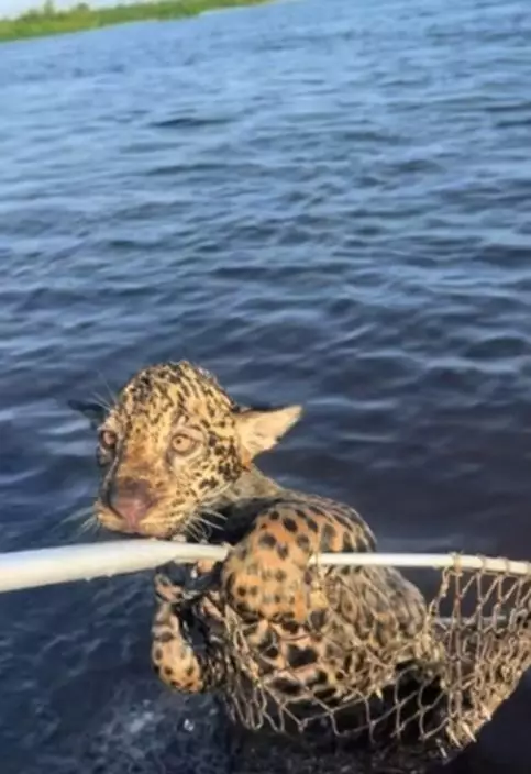 巴西一名漁夫拉比(Vanderlei Rabi)日前在潘塔納爾濕地捕魚時,意外發現一隻在水中載浮載沉的幼年美洲豹。他與友人及時伸出援手,成功將這隻體力不支的小生命救上岸。