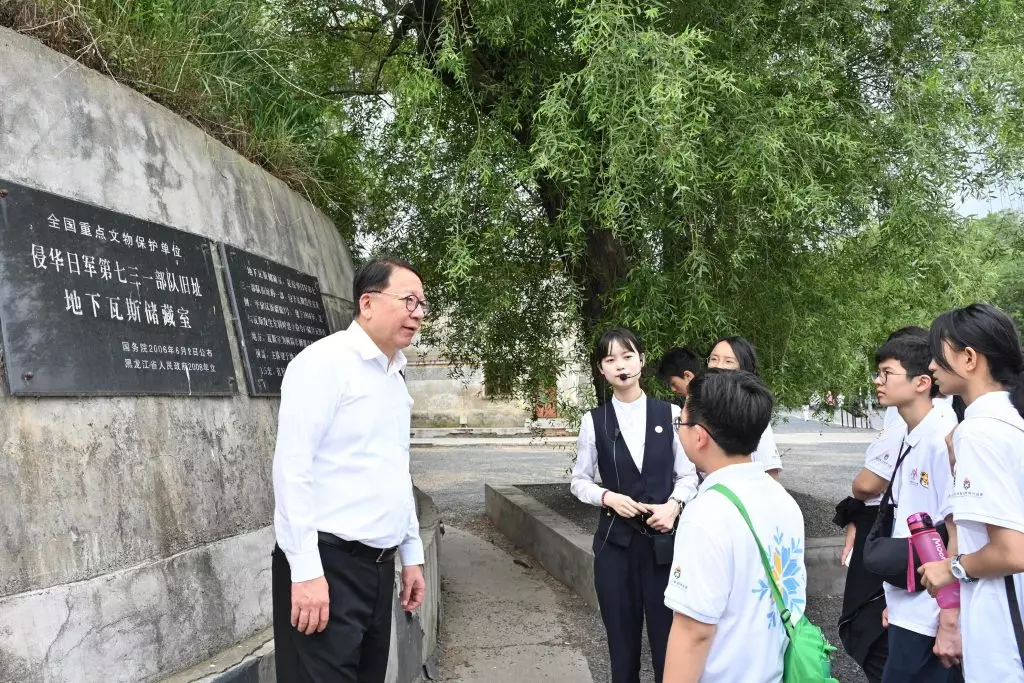 陳國基與「共創明『Teen』計劃」香港愛國主義教育黑龍江研學團學員一同參觀全國第一批百個愛國主義教育示範基地之一,侵華日軍第七三一部隊罪證陳列館,他指出,今年是抗戰勝利80周年,期望學員藉此參觀機會,深刻了解國家發展和強國建設的勤辛歷程,自覺肩負起維護國家安全的責任。