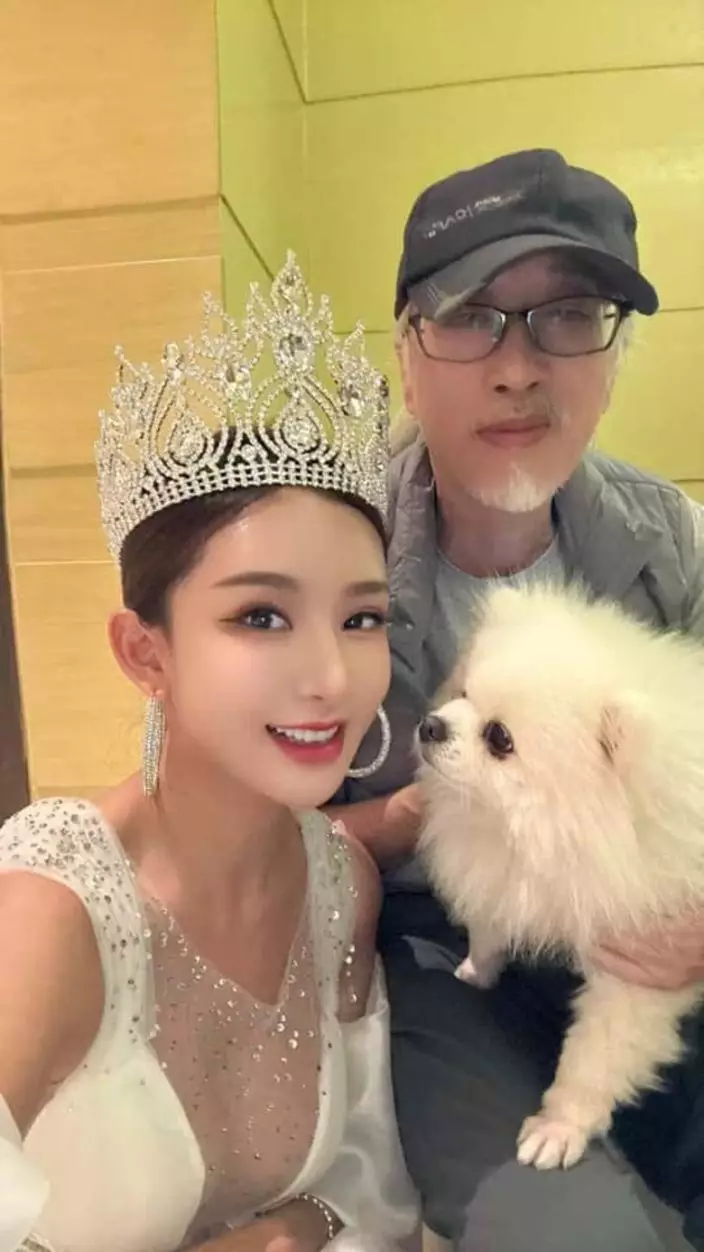 去年12月,他現身全球中華小姐選美頒獎典禮,與網紅可人(Kelly)合照。