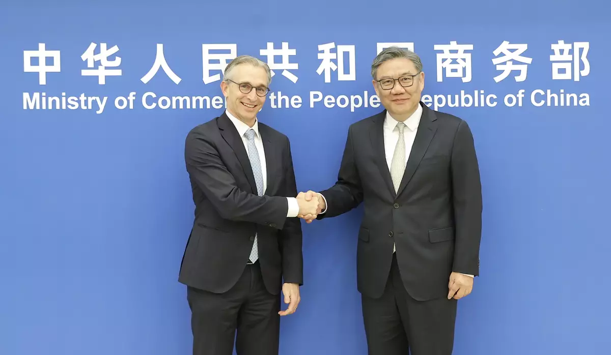 王文濤(右)和賈博瑞(左)握手。商務部圖片