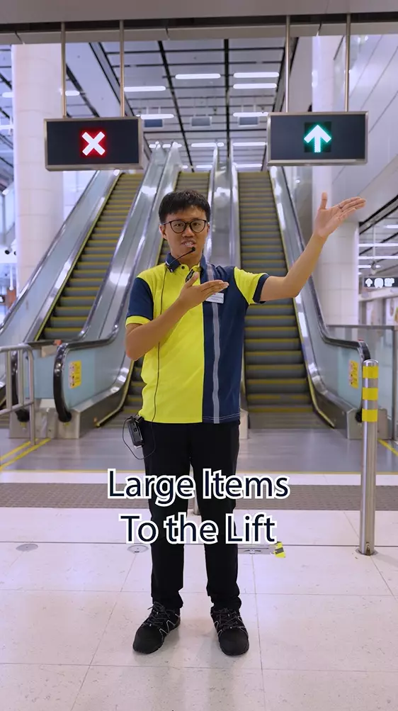 短短幾十秒的短片,Hinson貫徹以往「洗腦易記」為主的演繹風格,簡單清晰地以廣東話、普通話及英語Rap 出重點,再配以卡啦OK式的字幕「握扶手、企定定」、「扶手電梯唔好行」、「拎大喼,要搭𨋢」等,親自示範扶手電梯的正確使用方式。