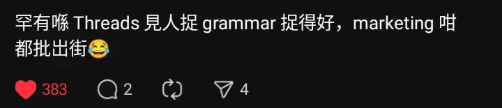 除了嚴肅討論,社交平台上亦不乏打趣與揶揄言論。部分網民戲稱,「這麼獨特的文法安排,果然符合 ‘unique’ 的主題」。亦有人幽默表示:「連語法都不跟常規,品牌果然另類!」一系列戲謔式評語令事件增添一絲網絡文化的滑稽氛圍。