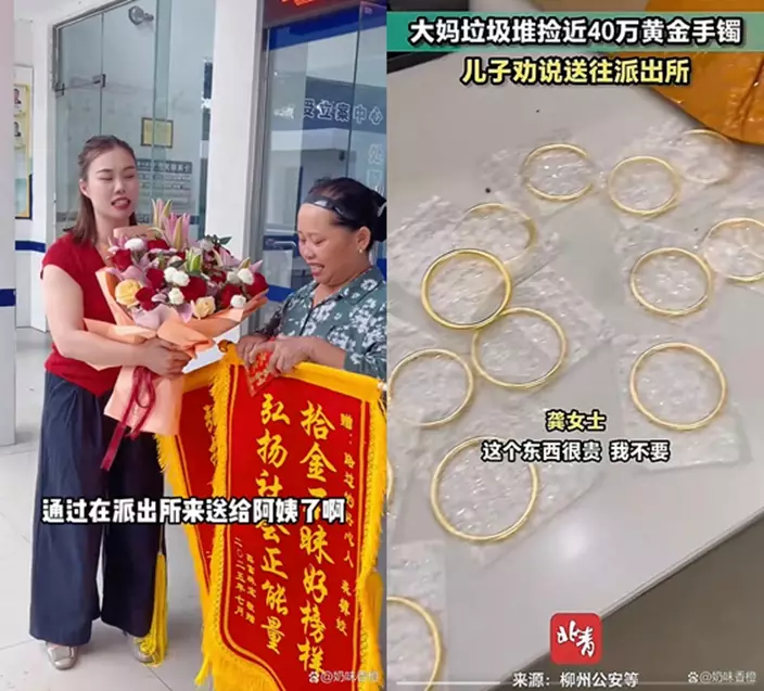 內地廣西近日發生一宗離奇珠寶丟失案,一名在珠寶店上班的職員竟將2隻價值約40萬人民幣的金手鐲當垃圾丟棄,所幸被一名女子撿到後報警歸還。
