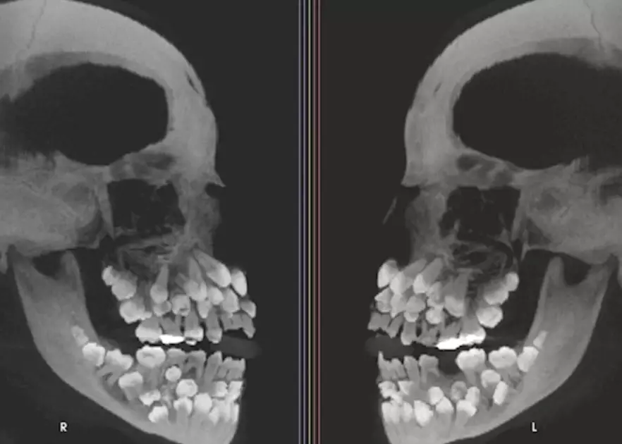 染色體檢查結果顯示,這名女孩患有一種罕見的遺傳變異,但該變異與多生牙的直接關聯性尚未確定。部分多生牙深埋在牙齦內或外觀與正常牙齒相似,貿然拔除可能損害顎骨,為降低風險,研究團隊召集牙齒矯正科、口腔顎面外科、牙周病科和假牙科等多科醫生,共同制定長期治療計畫,以保護女孩口腔健康和未來牙齒排列。