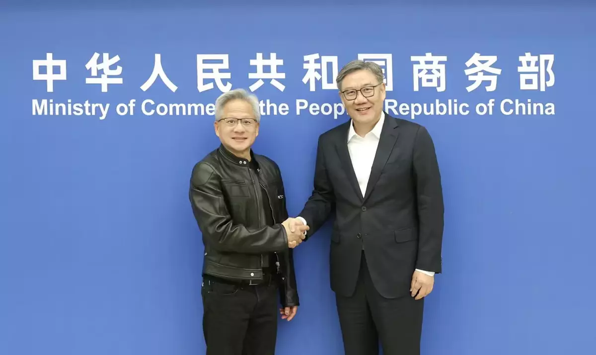 商務部部長王文濤17日與美國Nvidia行政總裁黃仁勳。