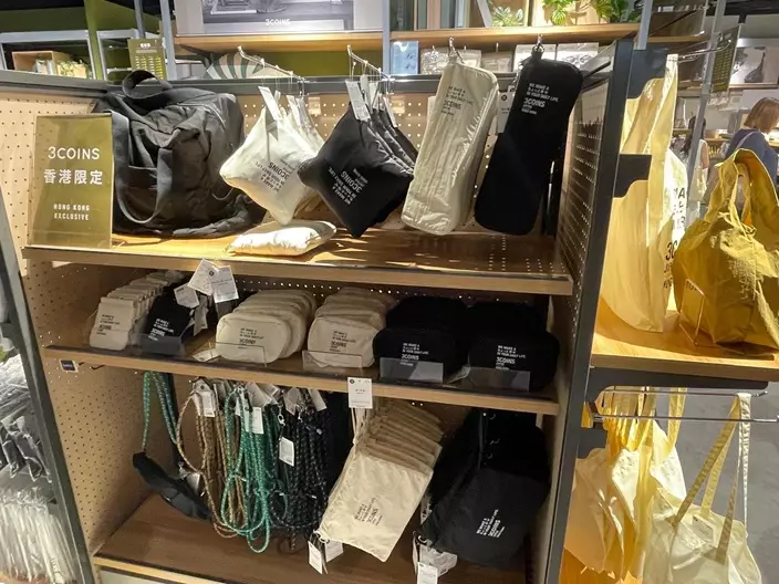 3COINS旗艦店設有香港限定區域,新張期間主打販售印有「3COINS HONG KONG」的手提袋、收納袋等。巴士的報記者攝