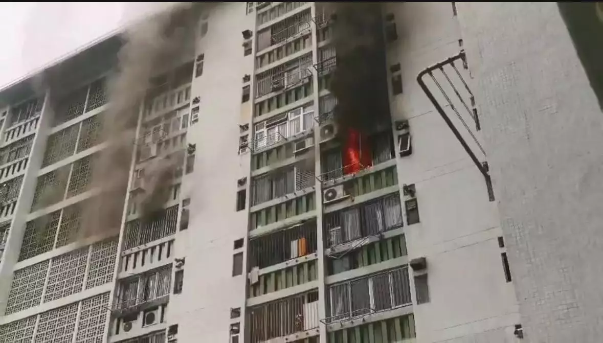 荃灣石圍角邨下午發生火警,一名男子懷疑從單位墮下死亡。消防指,接到消息稱死者和同住戶主疑曾發生爭執,初步相信火警起因有可疑。
