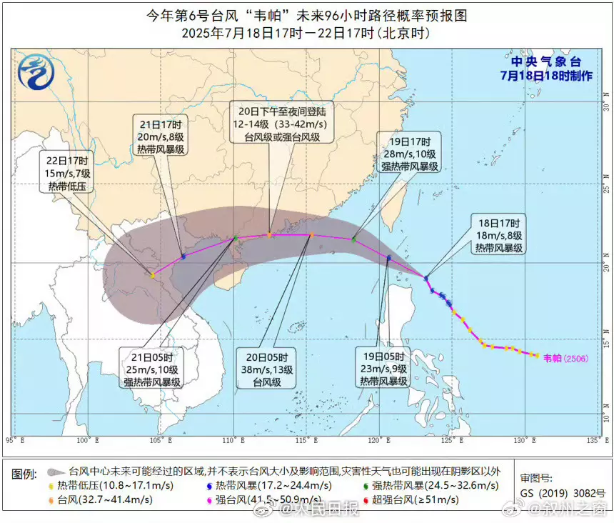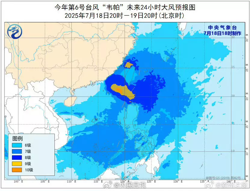 中央氣象台發布颱風黃色預警,預計風暴韋帕將以時速20至25公里向西北方向移動,周六上午移入南海北部海面,逐漸靠近深圳至海南文昌一帶沿海。