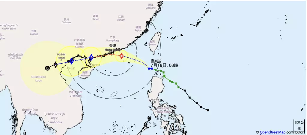 「韋帕」會在星期日(7月20日)頗為接近珠江口一帶,本港會有狂風大驟雨及雷暴,海有非常大浪及湧浪。天文台會評估是否需要在星期日初時改發更高熱帶氣旋警告信號。