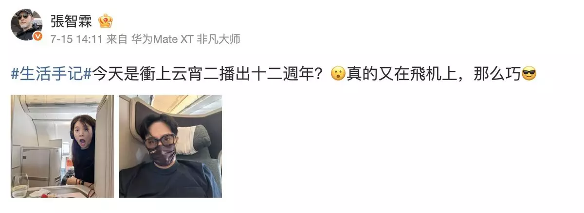 張智霖(Chilam)與吳卓羲(Ron)繼經典劇集《衝上雲霄》後,相阿12年再次合作,合演TVB新劇《璀璨之城》,原本劇集已經開拍,但因要優化劇本關係,劇組決定延至七月尾重返澳門珠海繼續拍攝,令眾人都獲得「意外假期」,Chilam就與老婆袁詠儀(靚靚)出國,搭飛機當日更擋正《衝上雲霄II》播出12周年!
