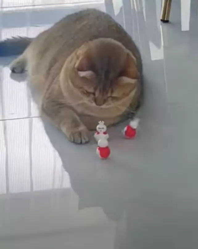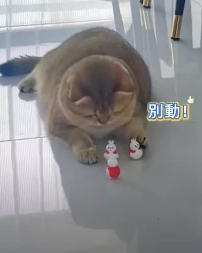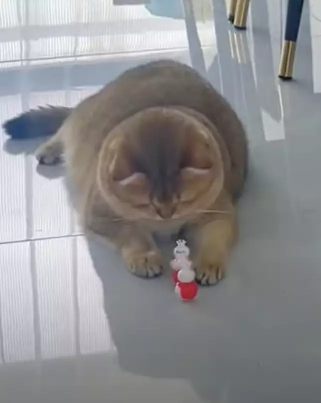 最近一段影片在社交平台上瘋傳,一隻金漸層英國短毛貓日前在家玩不倒翁玩具。