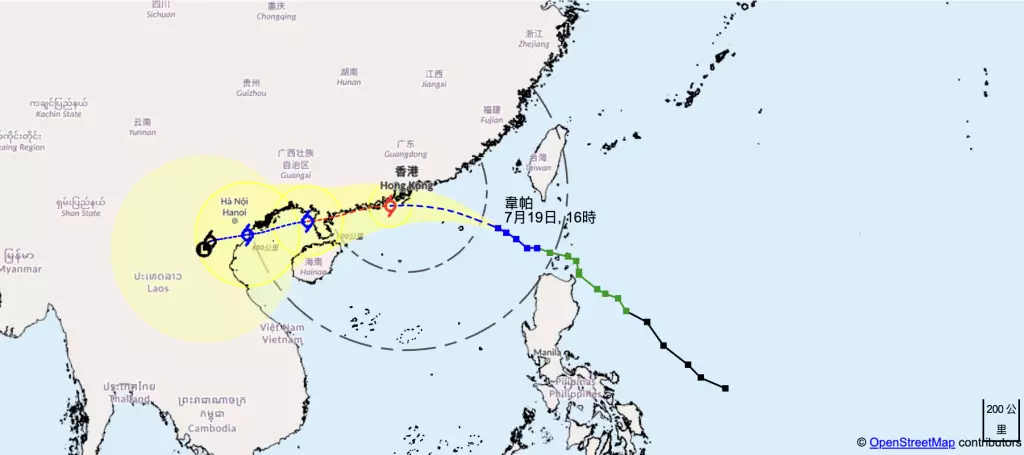 天文台表示,強烈熱帶風暴韋帕會在星期日頗為接近珠江口一帶,預料本港風勢將達烈風至暴風程度,會在星期日(7月20日)凌晨12時至2時改發八號烈風或暴風信號,亦會視乎韋帕與香港的距離、韋帕會否進一步增強為颱風及本地風力變化,評估星期日早上是否需要改發更高熱帶氣旋警告信號。